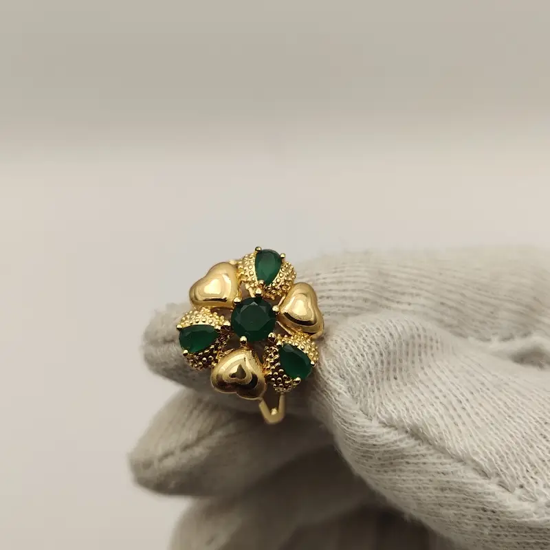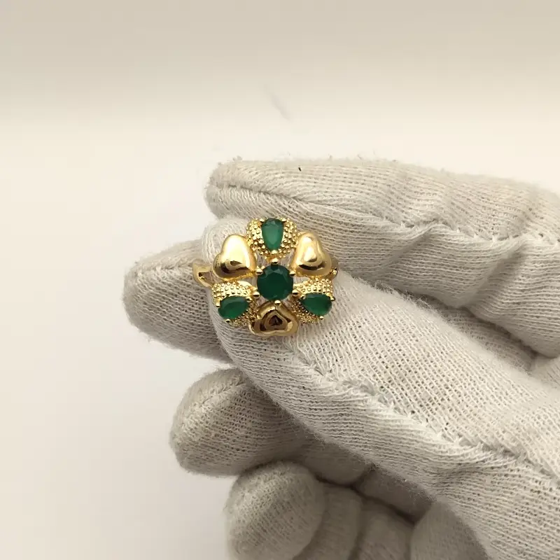 Ring Digital printed Ring with green zircon | Dukan.pk
